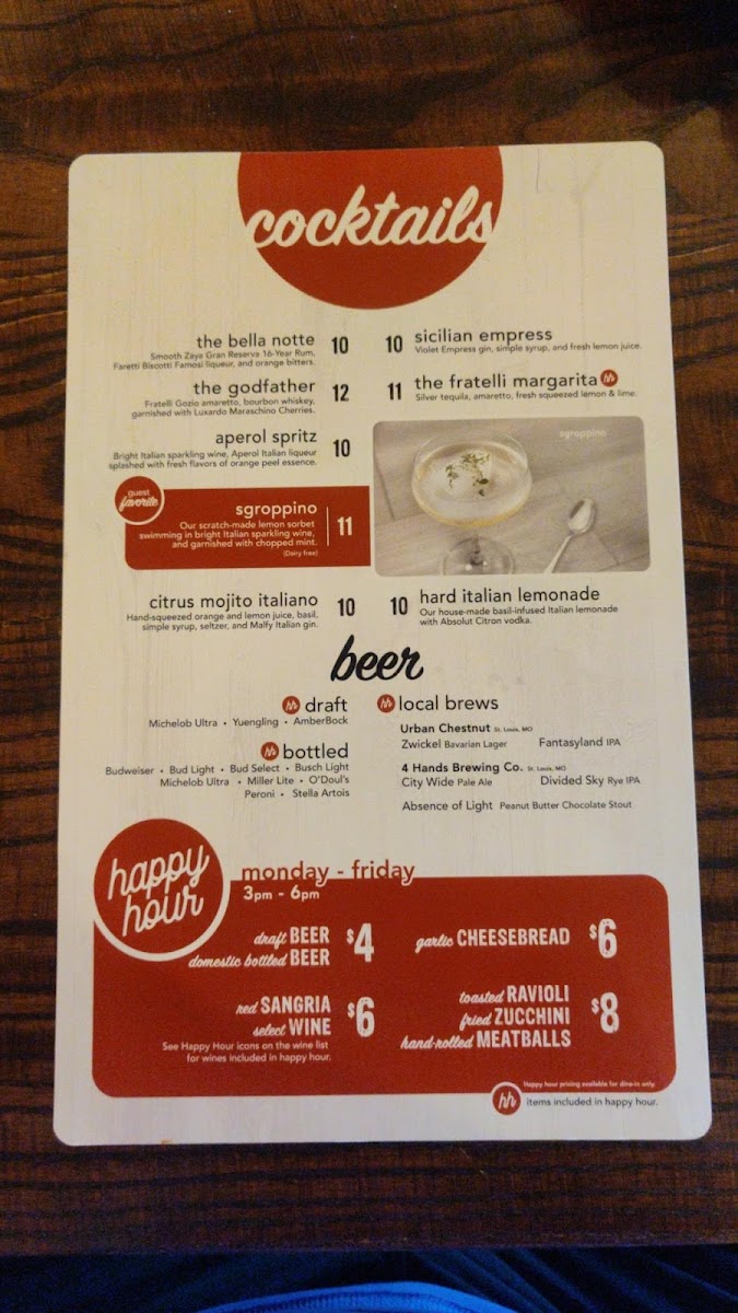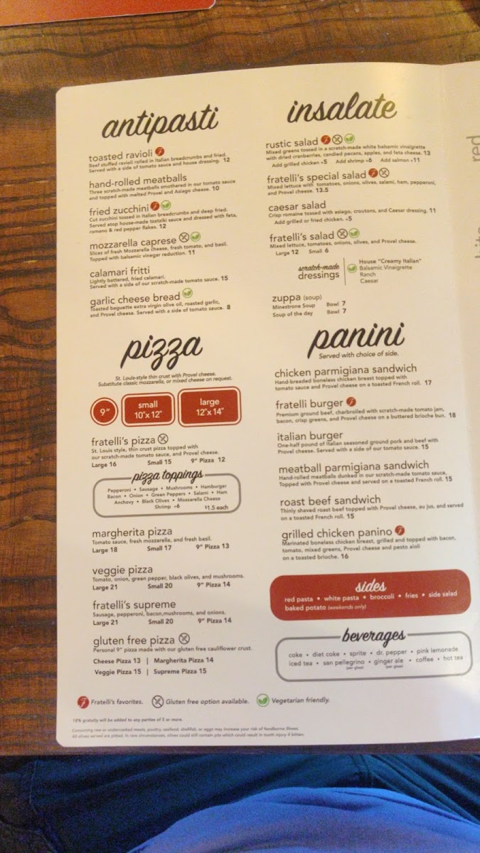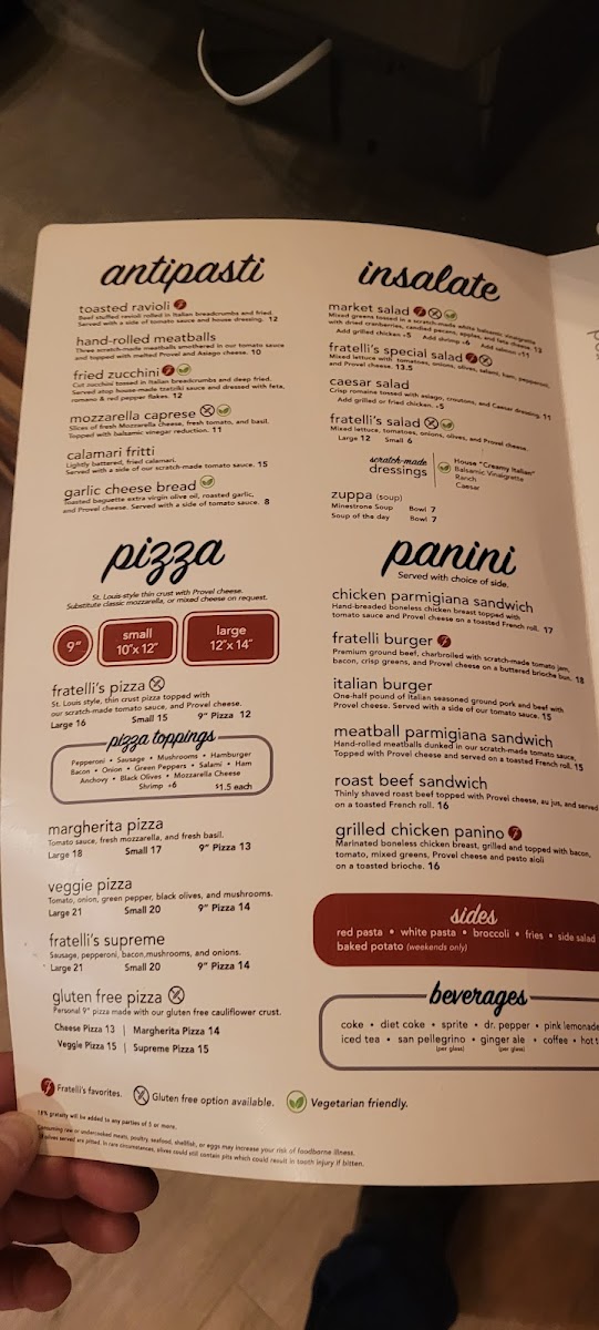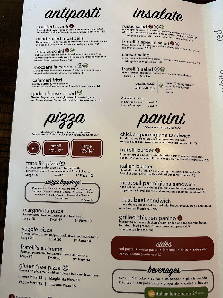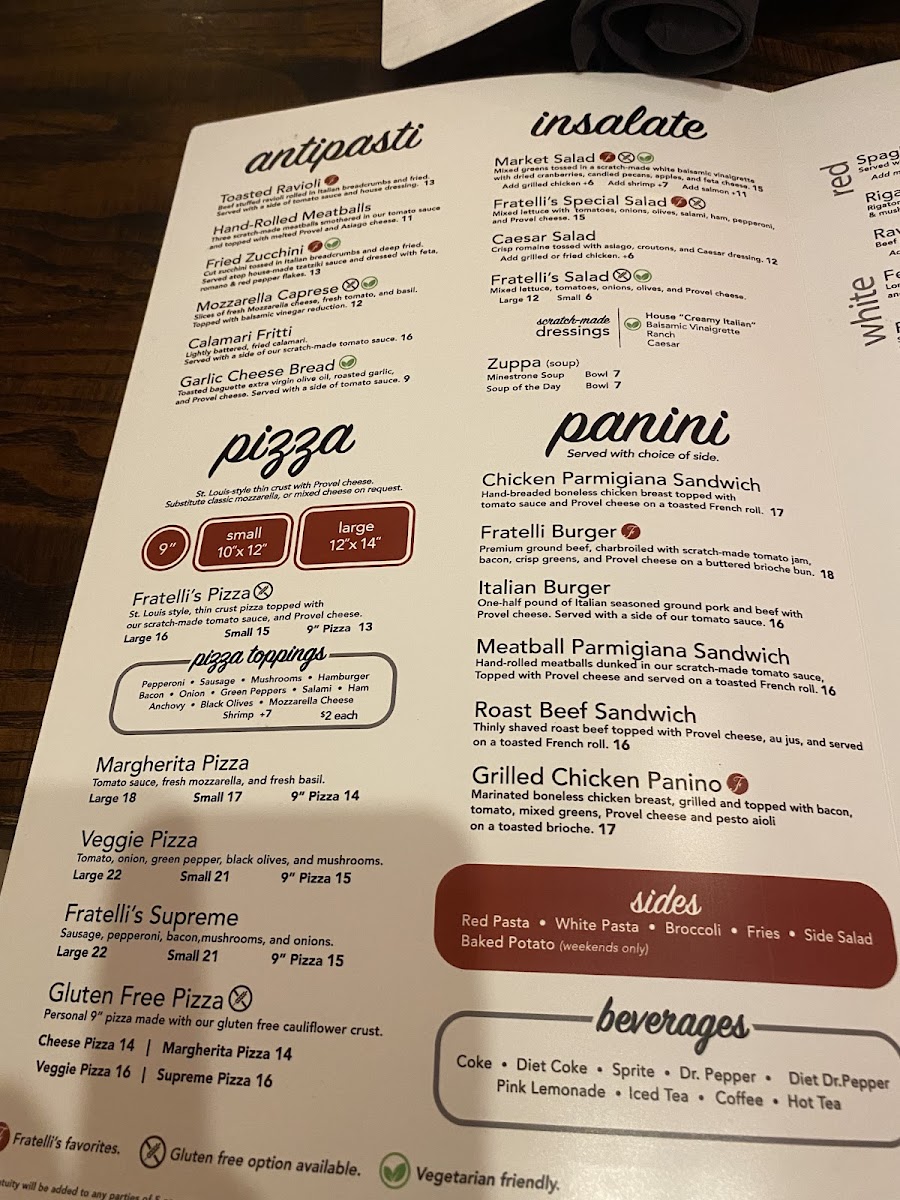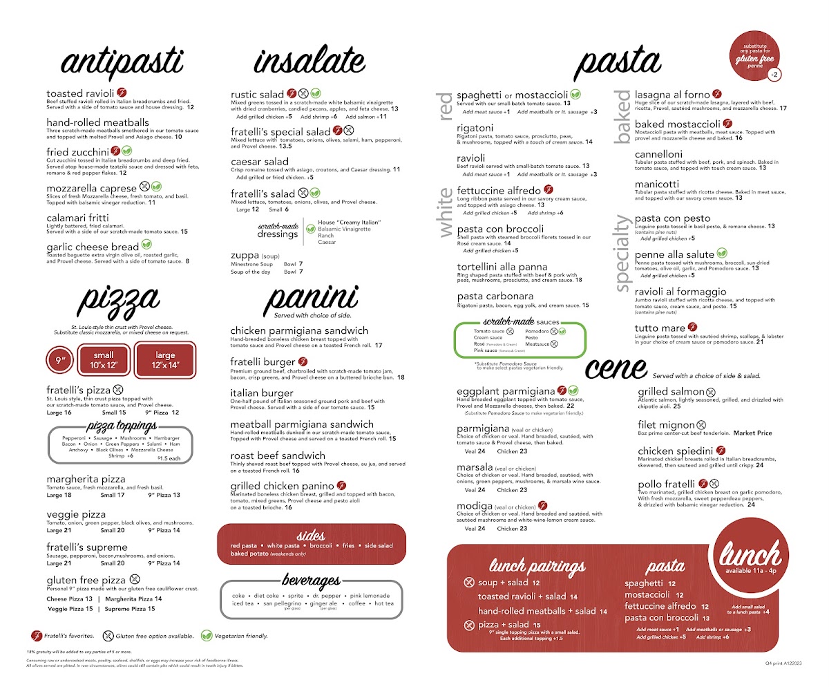 Fratelli's Ristorante Menu